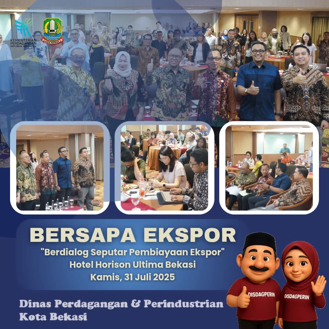 BEKASI- Matadunianews.com- Kepala Dinas Perdagangan dan Perindustrian Kota Bekasi hadir sekaligus memberikan sambutan pada Kegiatan “Bersapa Ekspor” (Berdialog Seputar Pembiayaan Ekspor), Kamis 31/07/2025.