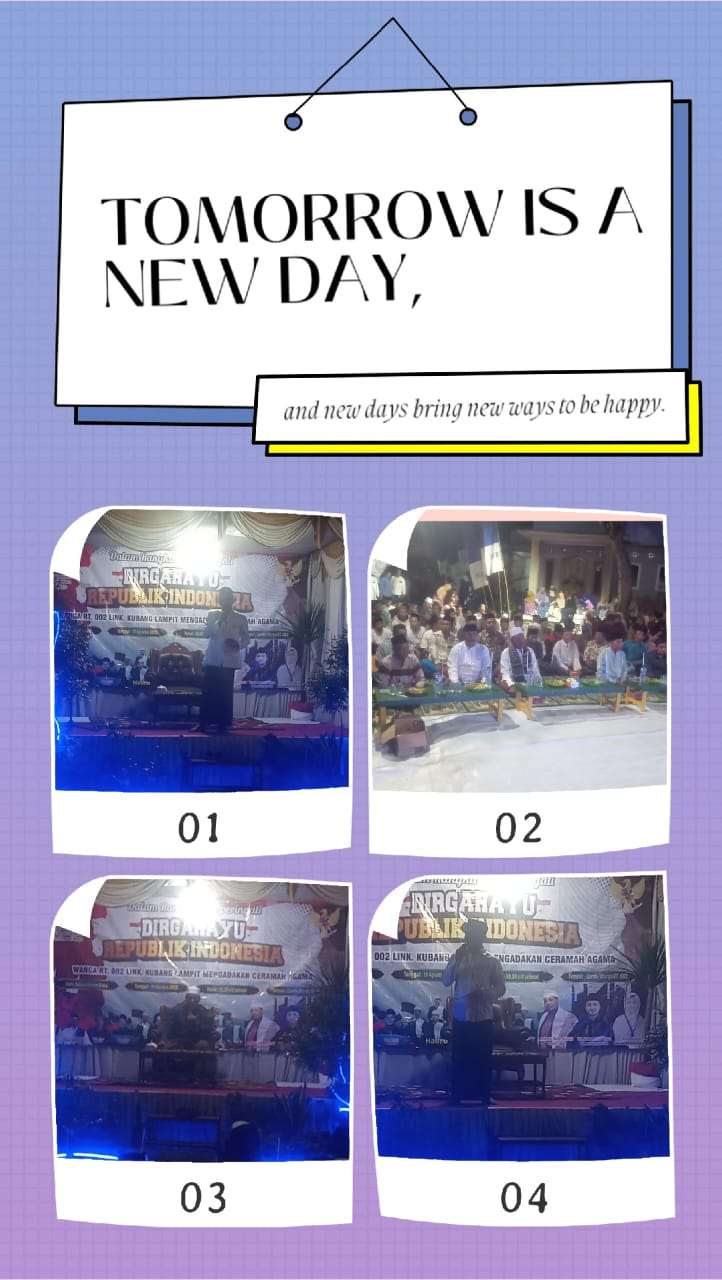 Ketua RW 01, Hadromi, turut memberikan apresiasi. Menurutnya, kegiatan ini menjadi kebanggaan tersendiri bagi warga Kubang Lampit. “Di tempat lain mungkin banyak yang merayakan dengan dangdutan, tapi RT 02 bisa menggelar Tabligh Akbar dengan menghadirkan penceramah dan kori ternama. Semoga ke depan Kubang Lampit semakin maju dan warganya sejahtera,” ucapnya.
